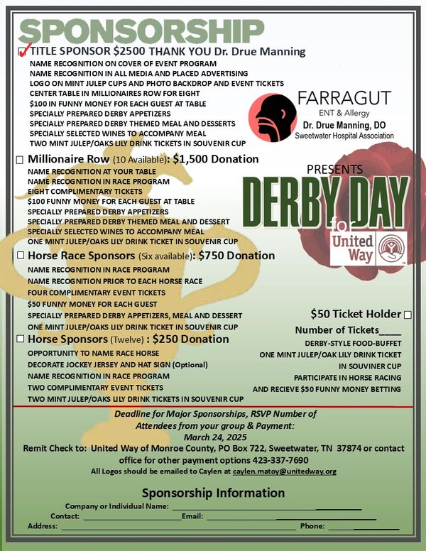 Join us in an evening of horses, hats and hospitality while raising funds for 12 local non profits through United Way of Monroe County.